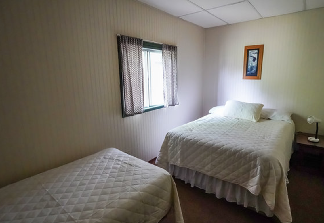 Enjoy a quiet getaway at Winefred Lake lodge by staying in one of our Eagle's Nest suites. These rooms includes two queen size beds, two single beds and a fold down futon in the living room.