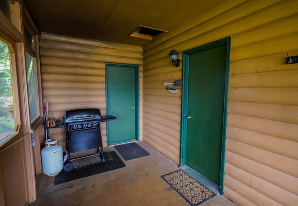 Step inside to find a quaint kitchenette, stocked with rustic kitchen utensils, plates, and cups. Relax after a day out fishing in your own screened in porch and grill up a feast on a private gas barbecue.
